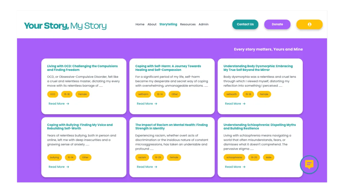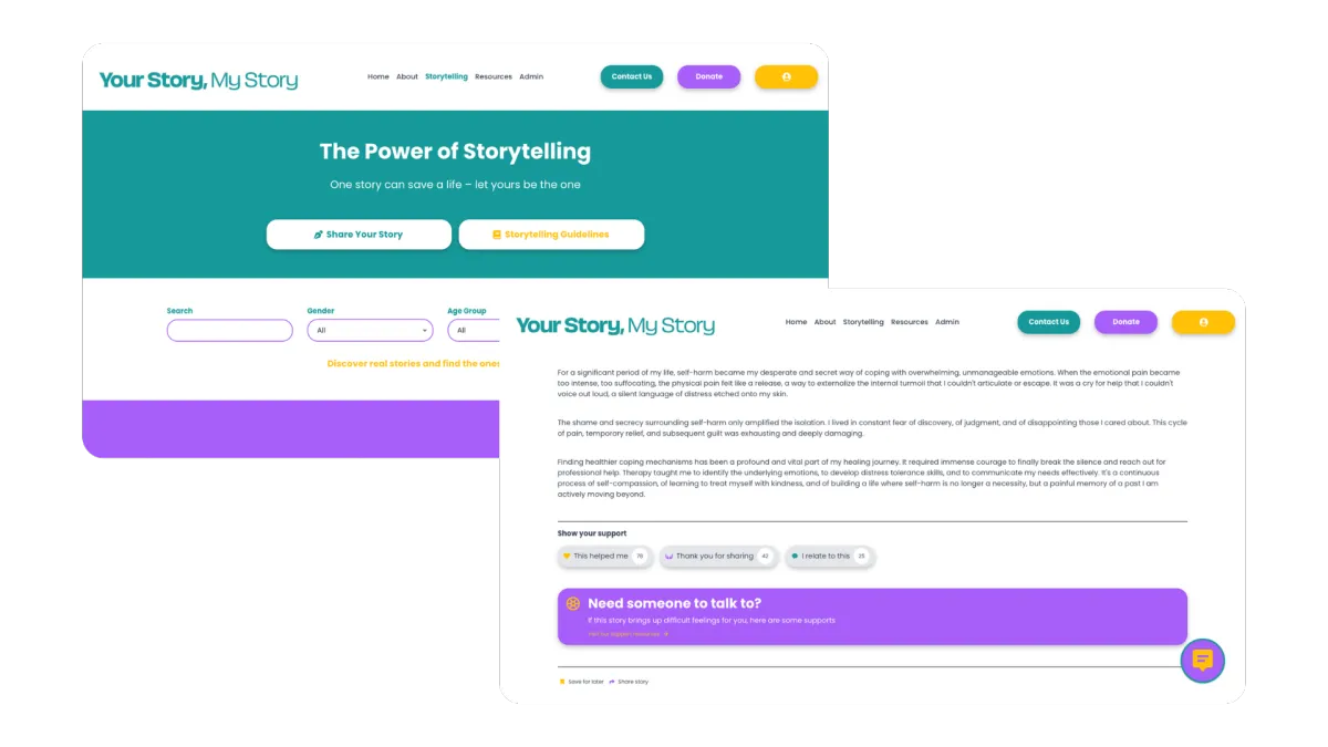 YSMS (Your Story, My Story) is a safe digital platform where young people share stories of adversity, empowerment, and resilience related to mental health to inspire and support others who are struggling.